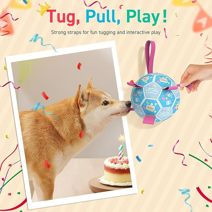 Home > Dog Birthday Toys, Soccer Ball for Dogs with Straps, Dog Ball Toy, Puppy Birthday Gifts, Durable Herding Balls for Medium Large Dogs (8 inch)