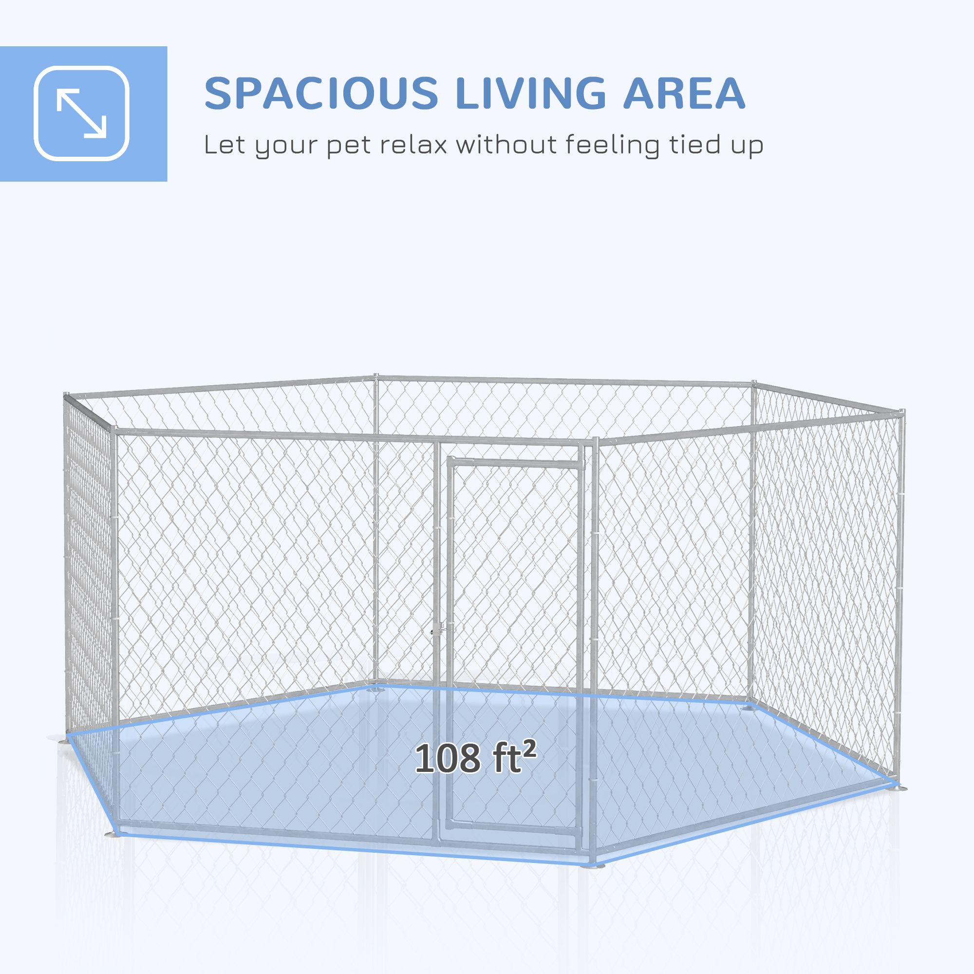 • - Enjoy a spacious living space of 108 ft² for your furry friend to roam and relax